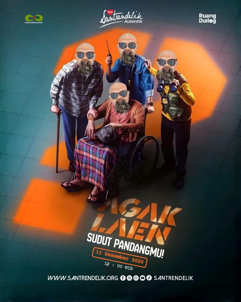 Pada Kamis, 11 Desember 2025 pukul 19.00 WIB, Ruang Dialog dan komunitas Santrendelik Autentik menggelar sebuah diskusi publik bertajuk “Agak Laen: Sudut Pandangmu!”. Acara yang ditampilkan dalam flyer dengan visual kreatif dan humoris ini menghadirkan tema yang dekat dengan kehidupan…